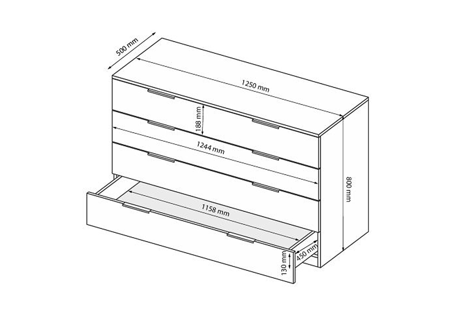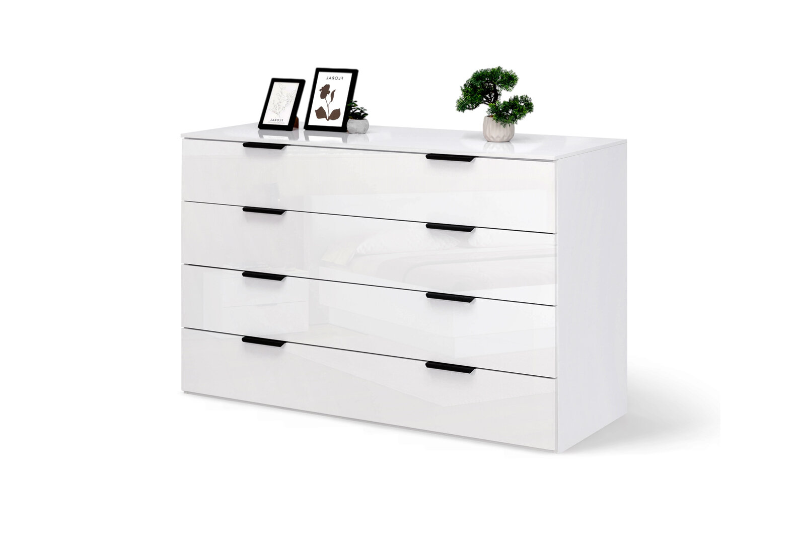 Komoda 4š, biely lesk Mila