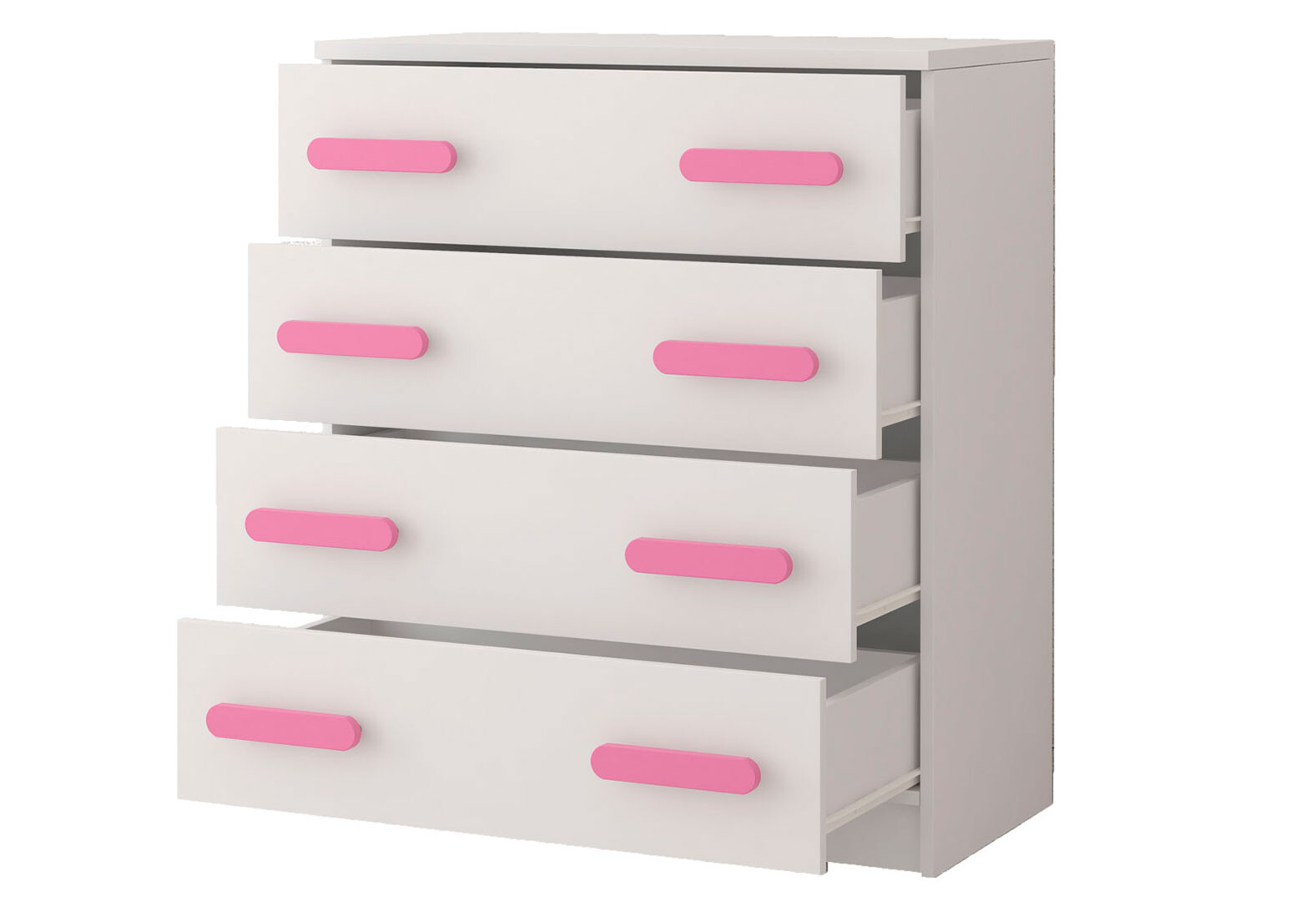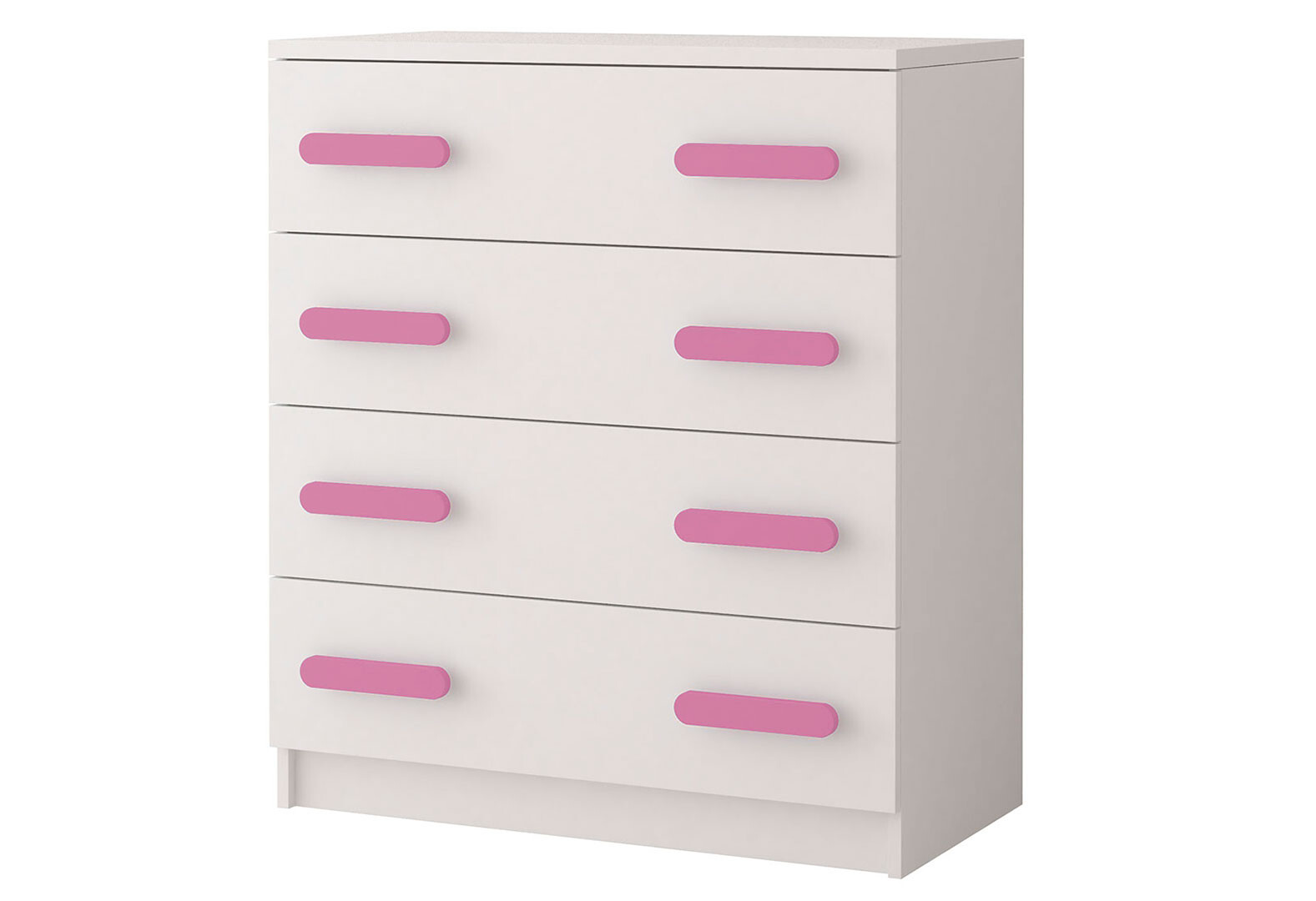 Komoda 4S Šmyk biela, úchytky ružový Idczak meble