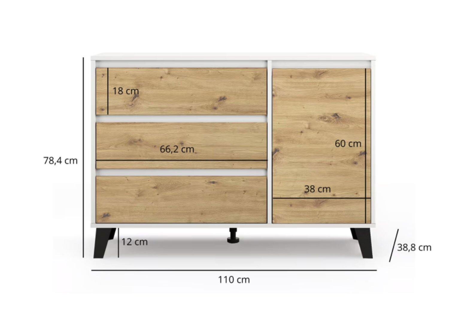 Fotografia 4 - Komoda Borg 1d3s biela / dub artisan
