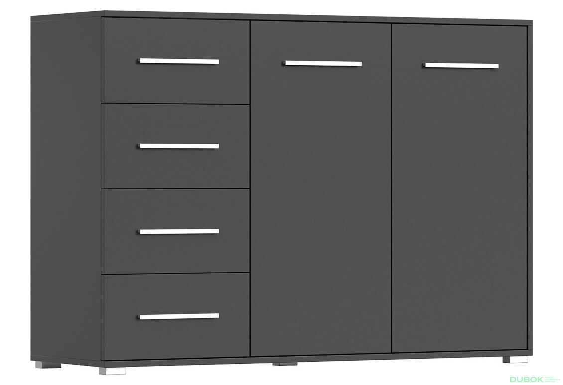 - Materiál prednej strany. Predná strana komody je vyrobená z kvalitnej drevotriesky, ktorá zabezpečuje odolnosť a stabilitu, čím predlžuje životnosť nábytku.