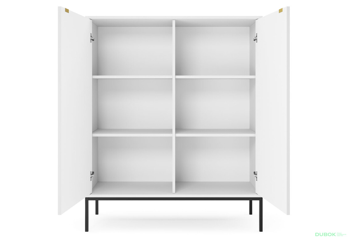Komoda K104 biela Nova Čierne nohy / zlatý úchytky je elegantným a funkčným doplnkom do vášho interiéru. S jej moderným škandinávskym štýlom a matným povrchom sa skvele hodí do rôznych typov miestností. Vyrobená z kvalitnej drevotriesky a MDF, táto komoda ponúka dostatok úložného priestoru za dvierkami, pričom jej čierne kovové nohy a zlaté úchytky dodávajú šmrnc a sofistikovanosť. S rozmermi 104 cm na šírku, 125 cm na výšku a 39 cm na hĺbku je ideálna pre tých, ktorí hľadajú kombináciu štýlu a funkčnosti. Objednajte si ju na dubok.sk a obohatte svoj domov o tento štýlový kúsok.