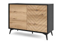 Komoda K104 evoke dub / čierna Diamond je ideálnym riešením pre tých, ktorí hľadajú kombináciu moderného dizajnu a praktickosti. S jej škandinávskym štýlom sa stane elegantným doplnkom každého interiéru. Komoda je vybavená dvierkami, ktoré zabezpečujú dostatok úložného priestoru pre vaše osobné veci. Jej minimalistický vzhľad v dekore evoke dub a čiernej farbe dokonale zapadne do akéhokoľvek prostredia, pričom dodáva nádych sofistikovanosti. Vďaka push to open úchytke je manipulácia s dvierkami jednoduchá a pohodlná. Materiál z drevotriesky a laminovaná povrchová úprava zaručujú jej dlhú životnosť a odolnosť voči poškodeniu.