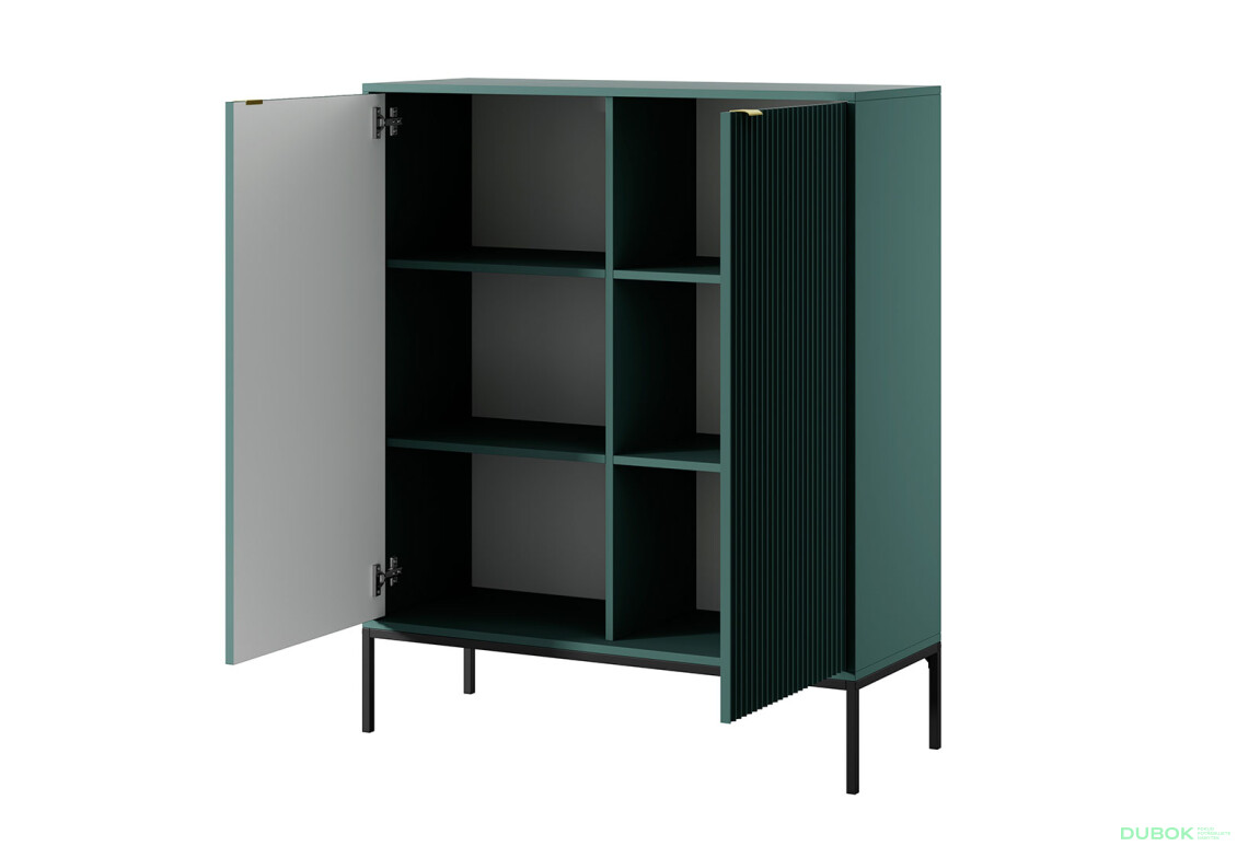 Komoda K104 v elegantnej zelenej farbe s čiernymi nohami a zlatými úchytkami je ideálnym doplnkom do vášho interiéru, ktorý spája moderný škandinávsky štýl s funkčnosťou. S rozmermi 104 cm na šírku, 125 cm na výšku a 39 cm na hĺbku ponúka dostatok úložného priestoru pre vaše osobné veci. Jej matná povrchová úprava a kvalitné materiály, ako sú drevotrieska pre korpus a MDF pre prednú stranu, zabezpečujú nielen atraktívny vzhľad, ale aj dlhú životnosť. Komoda s dvierkami je skvelým riešením pre tých, ktorí hľadajú štýlový a praktický nábytok do svojho domova.