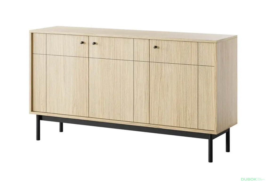 Komoda K154 dub linea Japandi je moderný nábytkový kúsok, ktorý skvele zapadne do vášho interiéru. S rozmermi 153.5 cm na šírku, 83.5 cm na výšku a 39 cm na hĺbku ponúka dostatok úložného priestoru pre rôzne predmety, pričom zachováva elegantný a minimalistický vzhľad. Jej predná strana je vyrobená z frézovaného DSP, čo dodáva komode unikátny dizajn a textúru. Kovové úchytky sú nielen praktické, ale aj esteticky príjemné, zatiaľ čo nohy z dreva zabezpečujú stabilitu a odolnosť. Laminovaná povrchová úprava zaručuje jednoduchú údržbu a dlhú životnosť, čo je ideálne pre moderné domácnosti. Tento kus nábytku je skvelou voľbou pre tých, ktorí hľadajú kombináciu funkčnosti a štýlu.