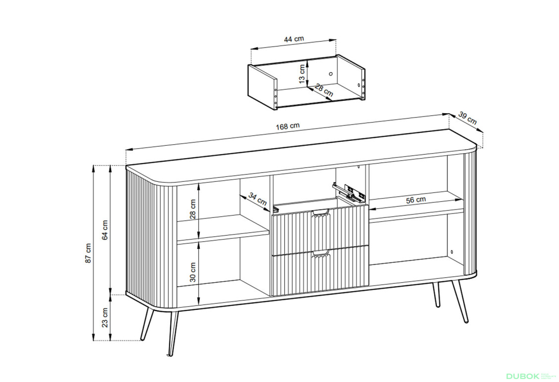 - Povrchová úprava. Matná povrchová úprava dodáva komode elegantný a moderný vzhľad.