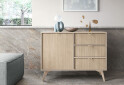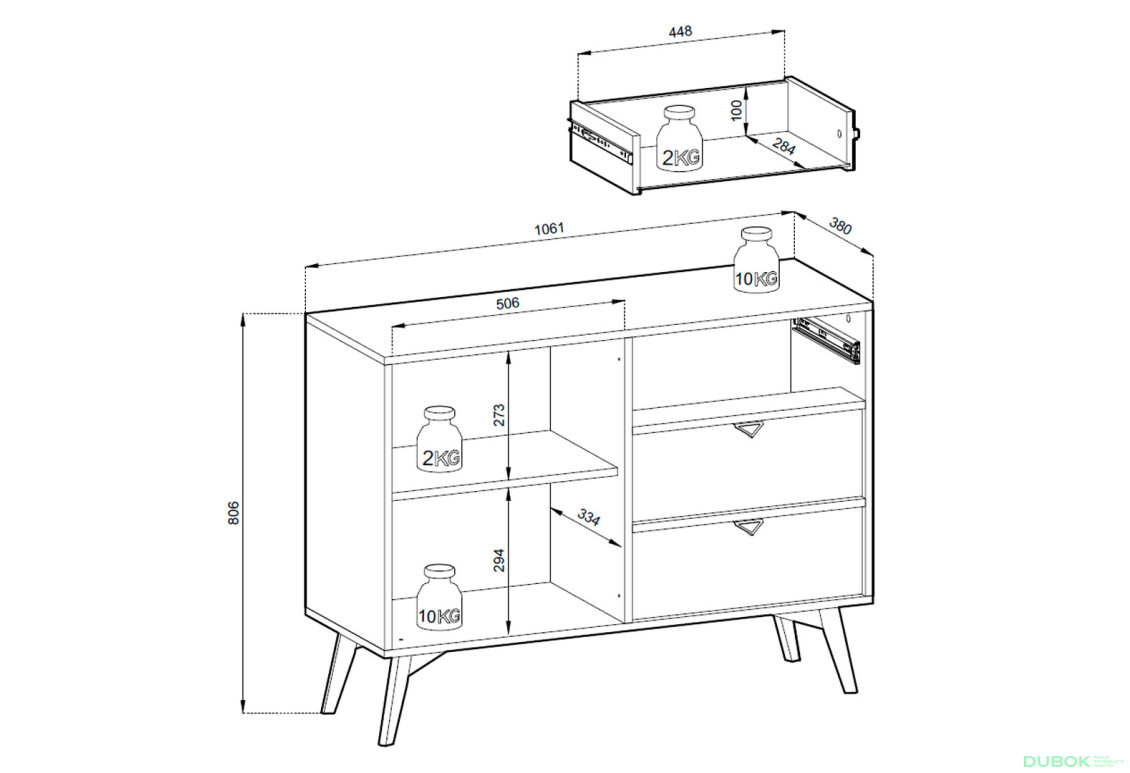 Komoda KSZD106 Forest béžový piesok / škandinávsky smrek je moderným a praktickým riešením pre váš domov. Tento kus nábytku sa skvele hodí do obývacích izieb, spální alebo detských izieb, pričom kombinuje funkčnosť s elegantným škandinávskym dizajnom. S rozmermi 106 cm na šírku, 80 cm na výšku a 38 cm na hĺbku ponúka dostatok úložného priestoru v troch zásuvkách a za dvierkami. Jej povrchová úprava je laminovaná, čo zaručuje jednoduchú údržbu a dlhú životnosť. Kvalitné guličkové vedenie zásuviek s plným výsuvom zabezpečuje plynulé a tiché otváranie a zatváranie.