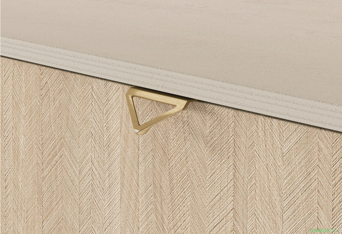 - Nábytková úchytka. Kovová úchytka dodáva moderný vzhľad a zvyšuje pohodlie pri otváraní zásuviek.
