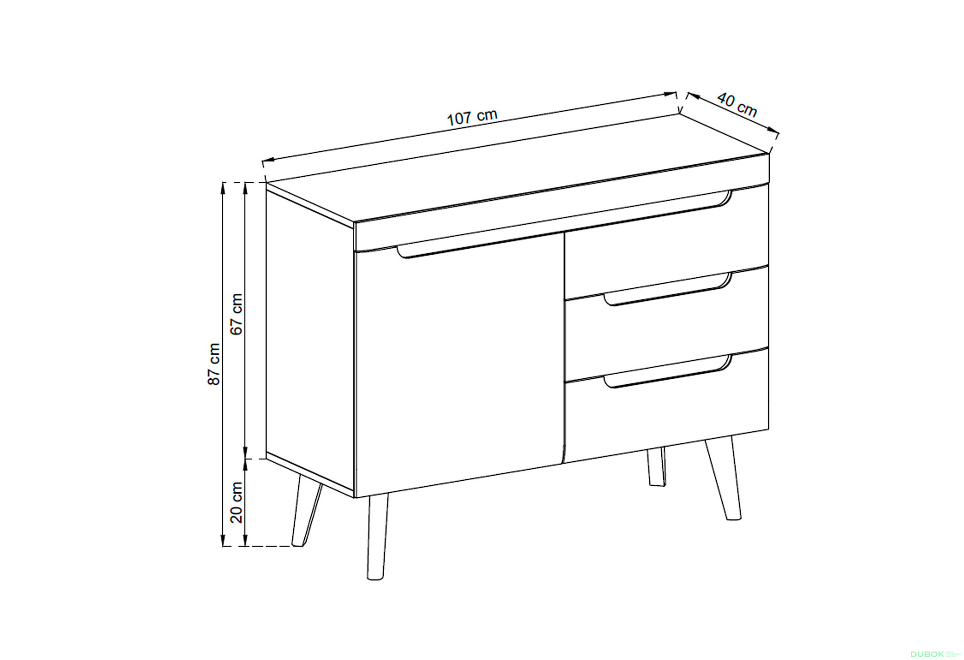 - Veľkosť: Šírka 107 cm, výška 83 cm, hĺbka 40 cm. Poskytuje dostatok priestoru pre uskladnenie bez zbytočného zabranenia miesta.