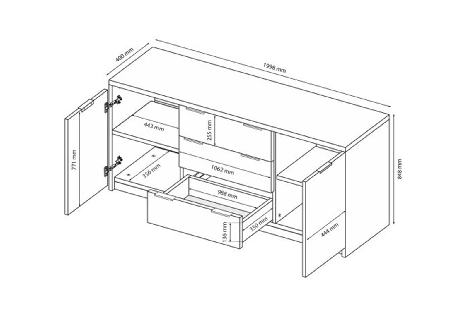 Komoda Roma Color 2 dvere 3 šírky 2,0 m lesklá sivá láva