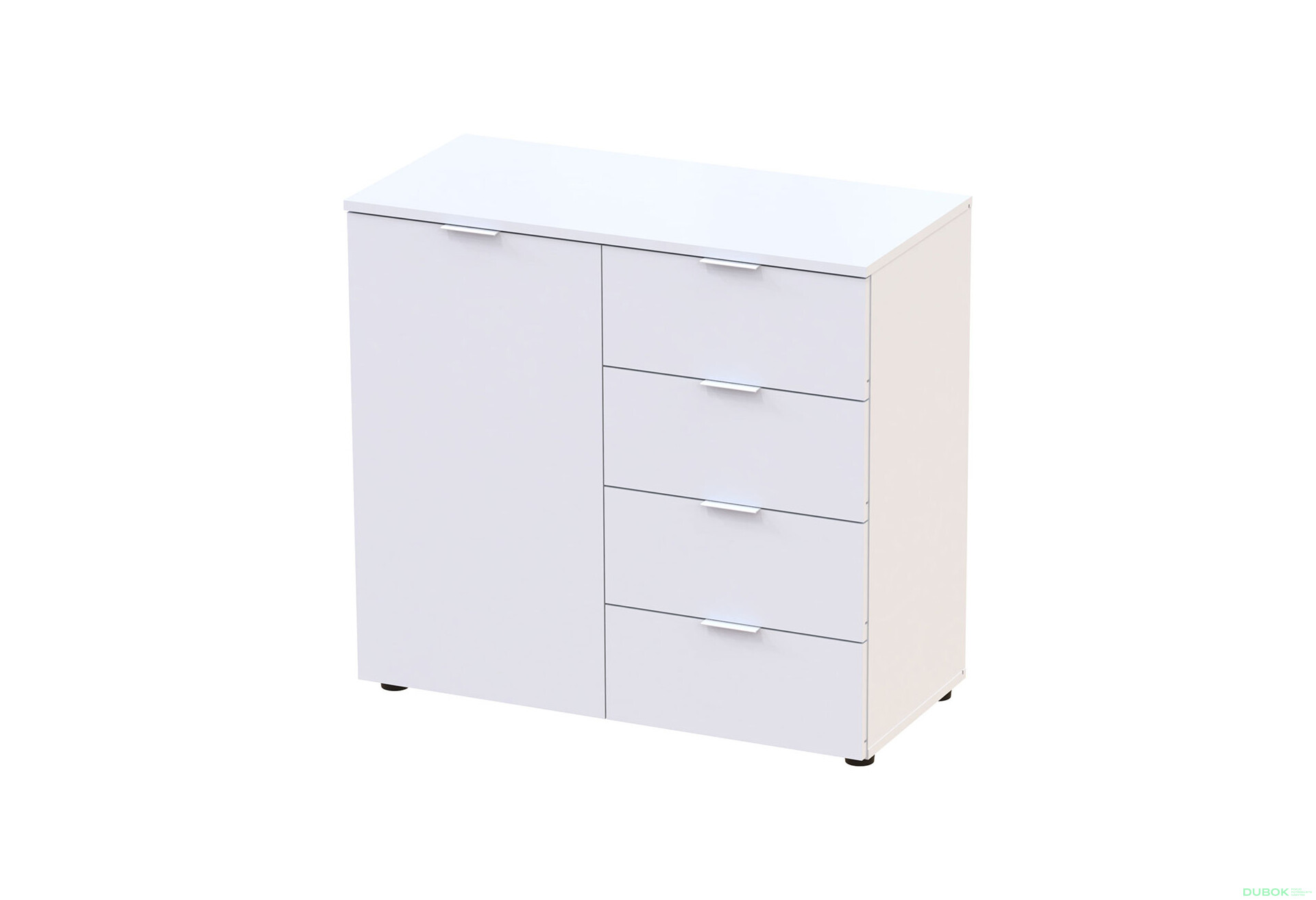 - Typ komody. S dvierkami a 4 zásuvkami poskytuje dostatok úložného priestoru a praktickosť.