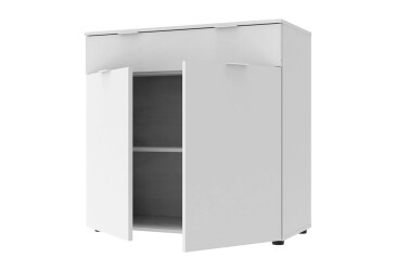 Komoda s dvierkami a 4 zásuvkami Ron 1 je ideálnym riešením pre moderné interiéry, kde sa kladie dôraz na funkčnosť a estetiku. S rozmermi 80 cm na šírku a výškou 80 cm ponúka dostatok úložného priestoru pre vaše osobné veci, pričom jej hĺbka 38 cm zabezpečuje, že nezaberá príliš veľa miesta. Vyrobená z kvalitnej drevotriesky, komoda je laminovaná, čo zaručuje jej odolnosť voči poškodeniu a jednoduchú údržbu. Biela farba dodáva interiéru sviežosť a svetlosť, pričom moderný štýl z nej robí dokonalý doplnok do obývačky, spálne alebo predsiene.