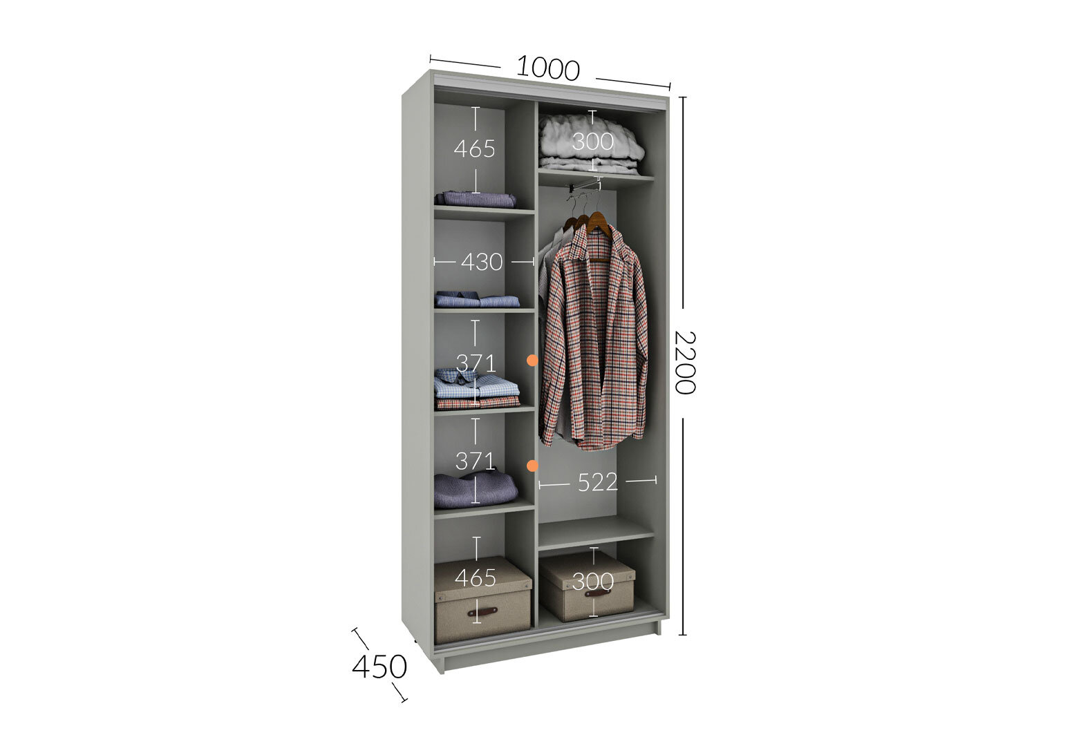 Skriňa s posuvnými dverami 2200x1000x450 2DTD nymphaea alba, profil strieborný