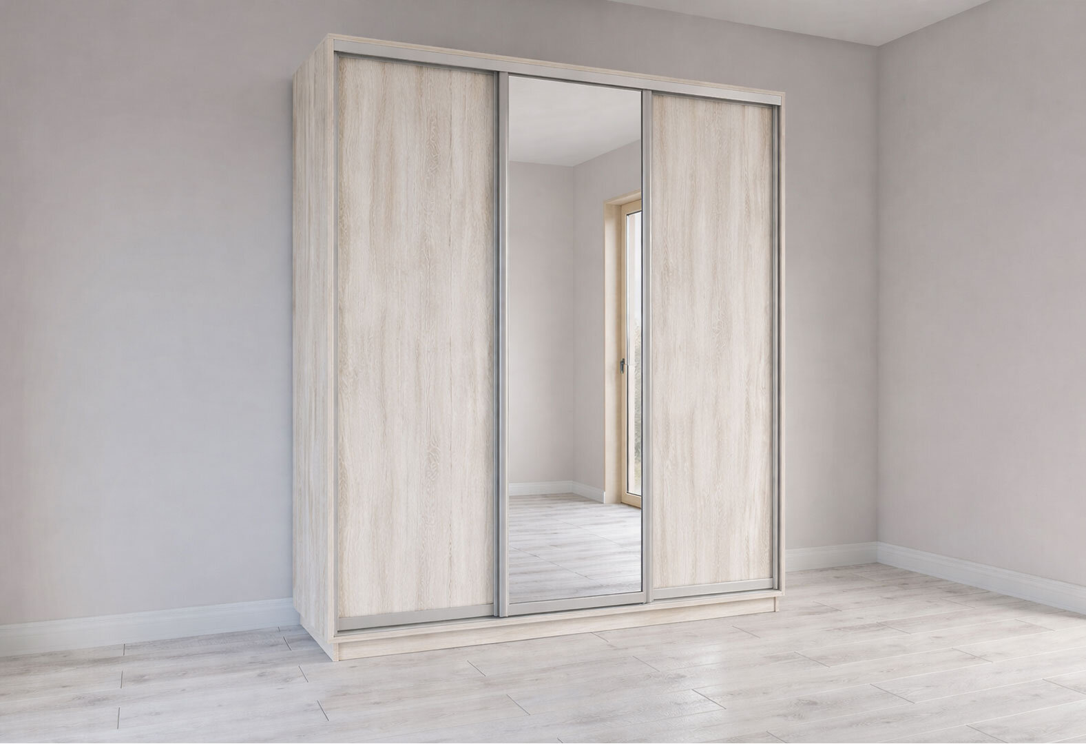 Fotografia 3 - Skriňa s posuvnými dverami 2200x2000x600 2DTD 1 Zrkadlo Artwood svetlý, profil strieborný