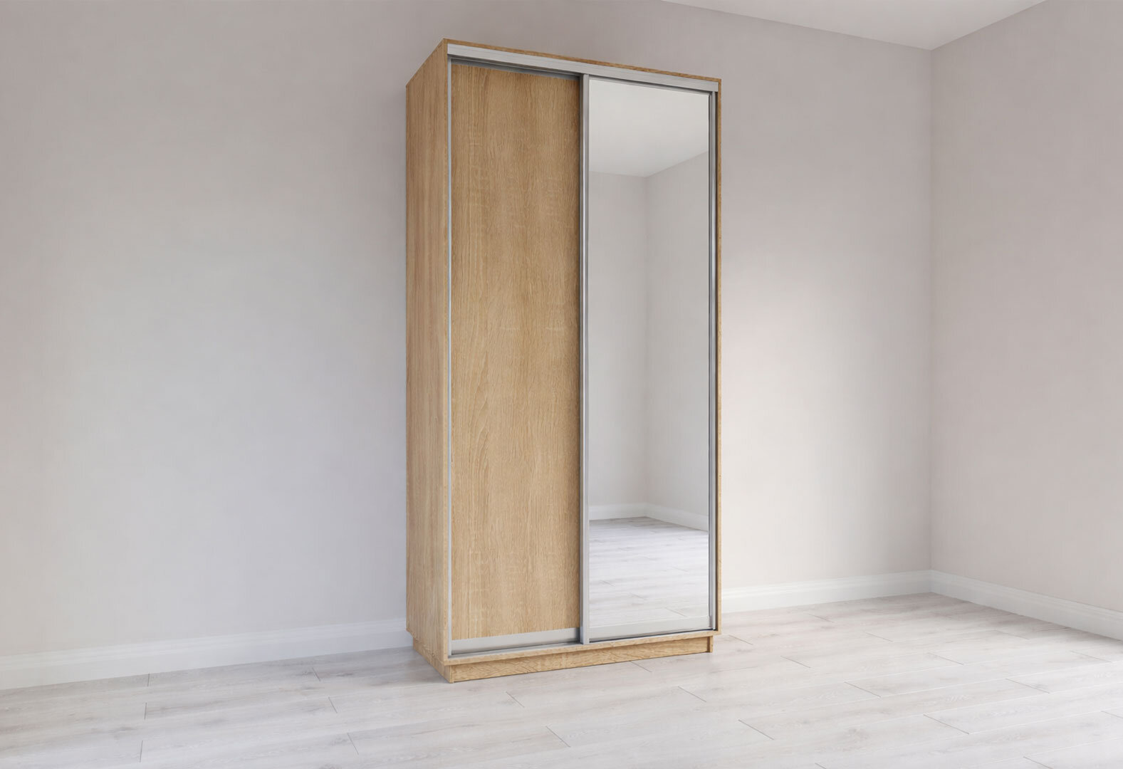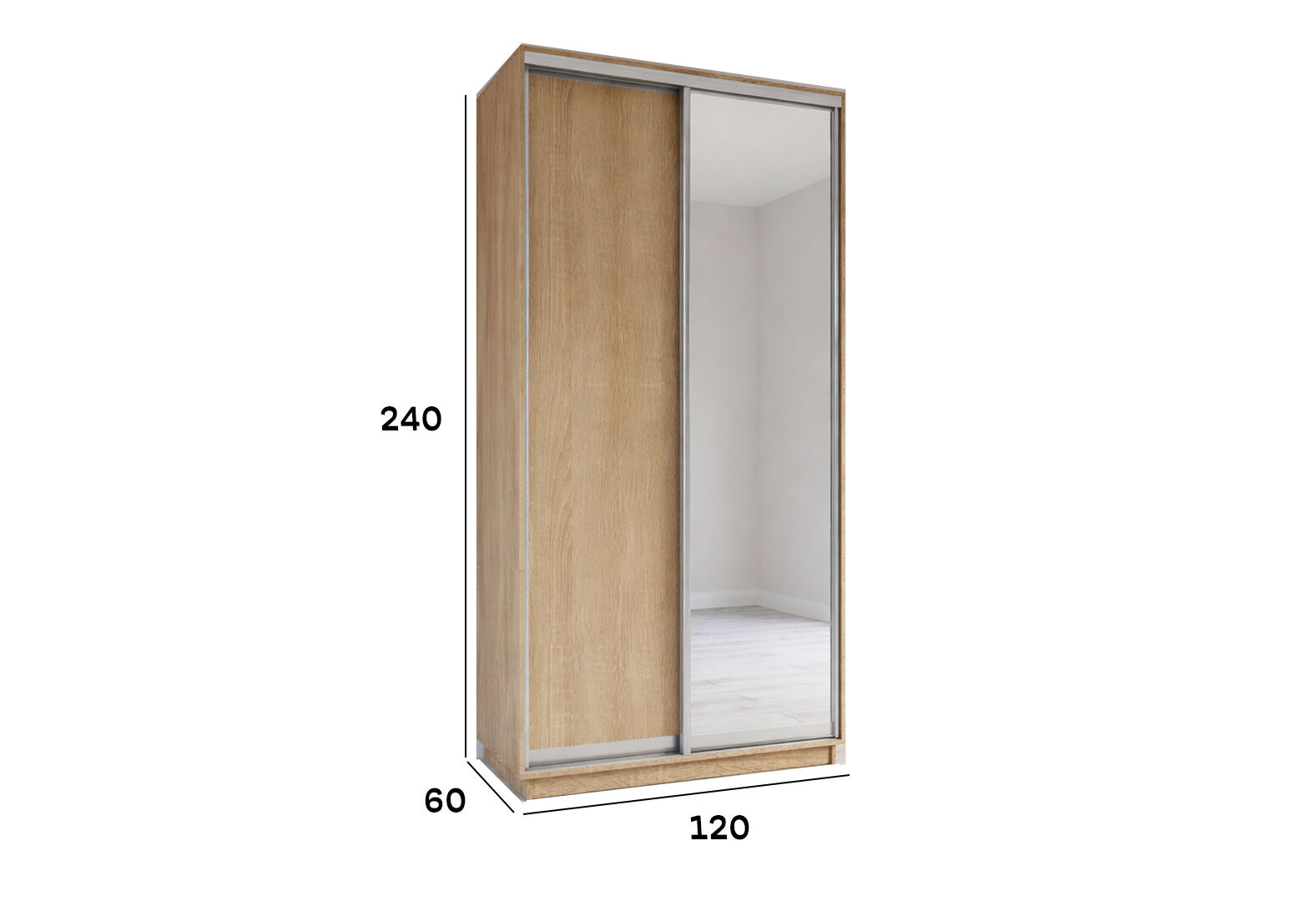 Skrine s posuvnými dverami 2400x1200x600 1DTD 1 Zrkadlo Dub Sonoma, profil strieborný