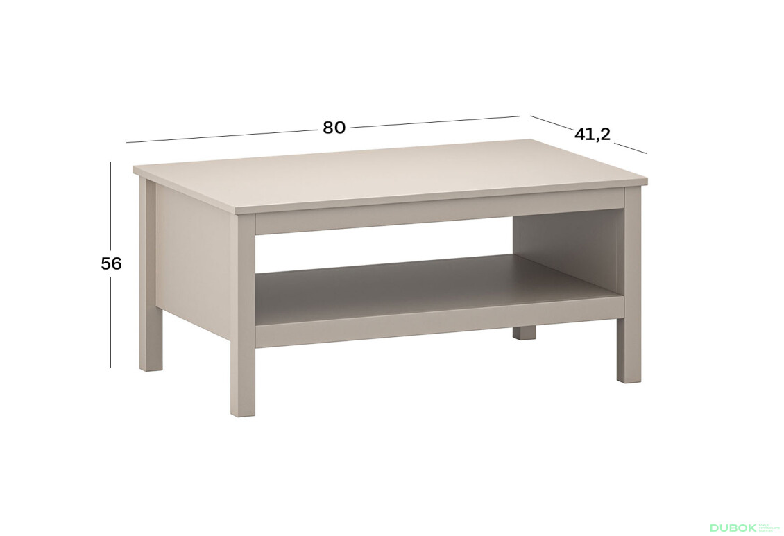 Konferenčný stolík 80 (N) taupe Kleo je ideálnym doplnkom pre moderné interiéry, ktorý kombinuje funkčnosť a štýlový dizajn. S rozmermi 80 cm na šírku, 56 cm na výšku a 41,2 cm na hĺbku ponúka dostatočný priestor na odloženie nápojov, kníh alebo dekorácií. Je vyrobený z kvalitnej drevotriesky s laminovaným povrchom, čo zabezpečuje jeho odolnosť a jednoduchú údržbu. Tento stolík je vybavený poličkou, čo poskytuje praktický úložný priestor pre vaše drobnosti. V elegantnom taupe dekore sa skvele hodí do rôznych typov zariadení a dodáva im moderný nádych. Objednajte si tento štýlový kus nábytku na dubok.sk a vylepšite svoj obývací priestor.