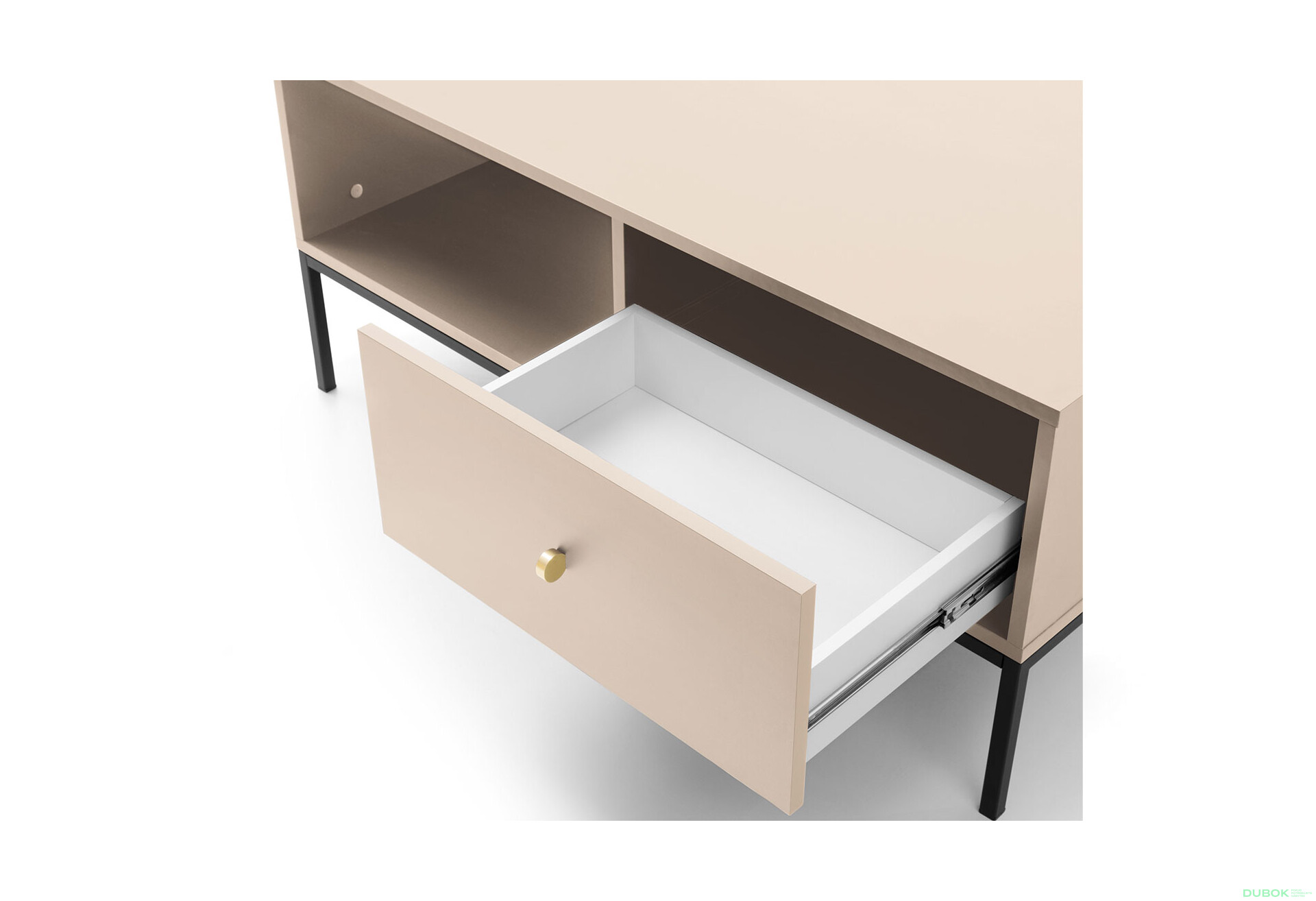 Konferenčný stolík ML104 Mono pieskovo béž je ideálnym riešením pre moderné obývacie izby, kde sa stretáva štýlový dizajn s praktickosťou. S rozmermi 103,5 cm na šírku, 46,2 cm na výšku a 68 cm na hĺbku ponúka dostatok priestoru na odloženie vašich obľúbených kníh, časopisov alebo dekorácií. Jeho pieskovo béžový dekor a matná povrchová úprava dodávajú stolíku elegantný vzhľad, ktorý sa hodí do akéhokoľvek interiéru. Kvalitné materiály, ako sú drevotrieska a kov, zabezpečujú dlhú životnosť a odolnosť tohto kusu nábytku. Zásuvky poskytujú praktický úložný priestor, čo z neho robí nielen krásny, ale aj funkčný doplnok vašej domácnosti.