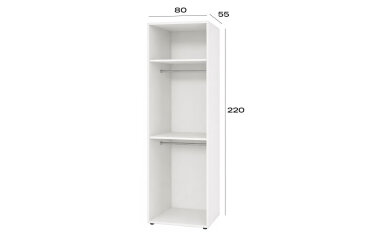 • Veľkosť. S rozmermi 80 cm na šírku, 220 cm na výšku a 55 cm na hĺbku ponúka dostatočný priestor na uskladnenie a organizáciu vašich vecí.