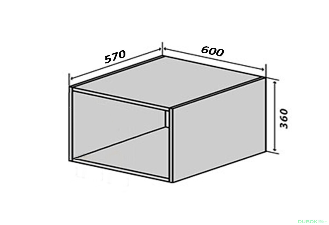 - Veľkosť. Korpus má ideálne rozmery 60 cm na šírku, 36 cm na výšku a 57 cm na hĺbku, čo ho robí skvelým riešením pre menšie aj väčšie kuchyne.