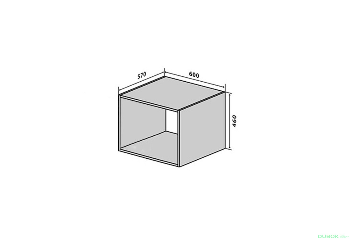 - Veľkosť. Skriňa má šírku 60 cm, výšku 46 cm a hĺbku 57 cm, čo ju robí ideálnou pre menšie kuchyne alebo ako doplnok k väčším úložným systémom.