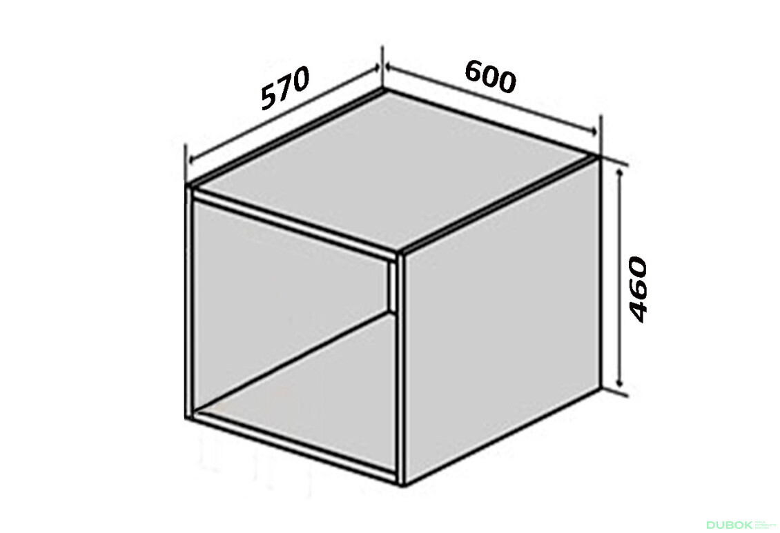 - Veľkosť. S rozmermi 60 cm na šírku, 57 cm na výšku a 46 cm na hĺbku je skriňa ideálna pre menšie kuchyne, kde je každý centimeter dôležitý.