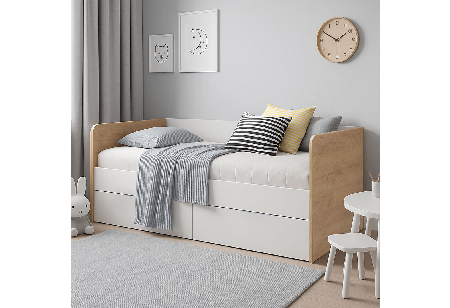 Fotografia 3 - Posteľ Junior 0,9x2,0 s rámom, lesklá biela / dub kraft Asti