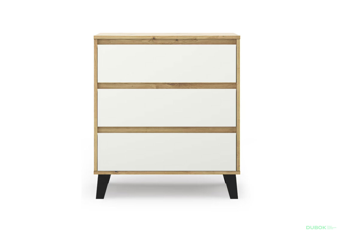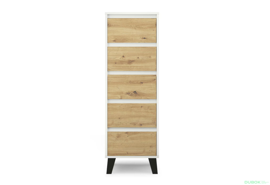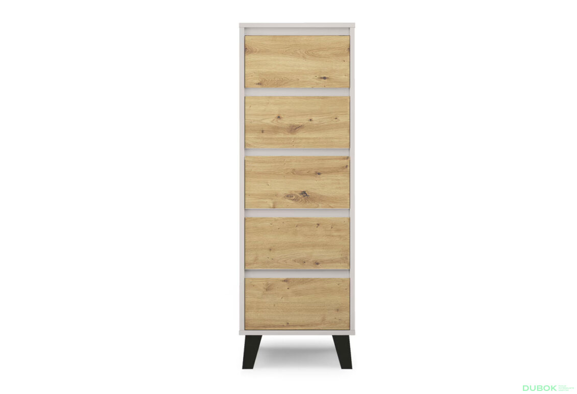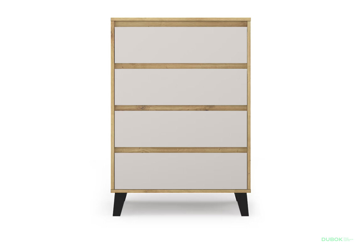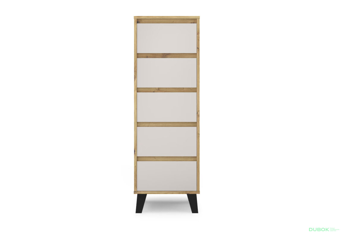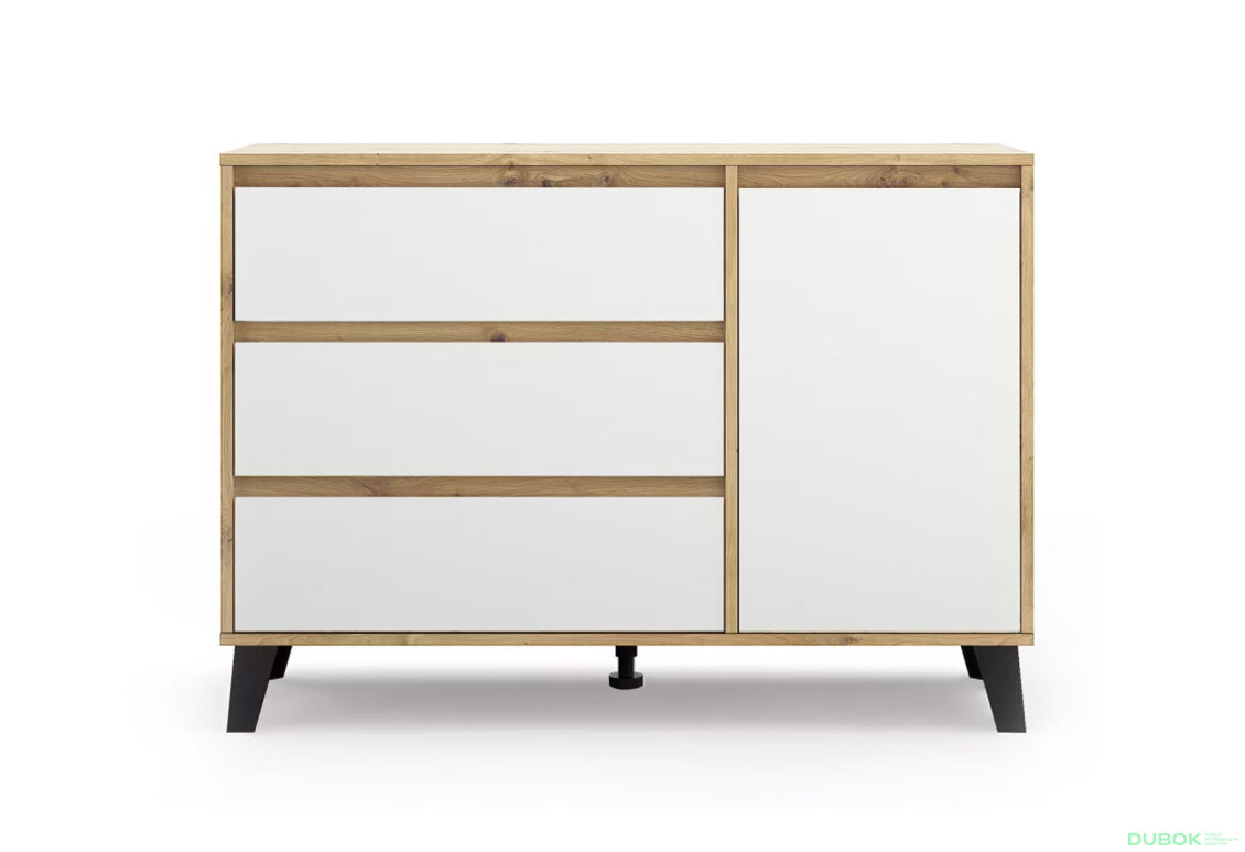 - Materiál prednej strany. Predná strana je vyrobená z kvalitnej drevotriesky, ktorá zaručuje odolnosť a dlhú životnosť nábytku.