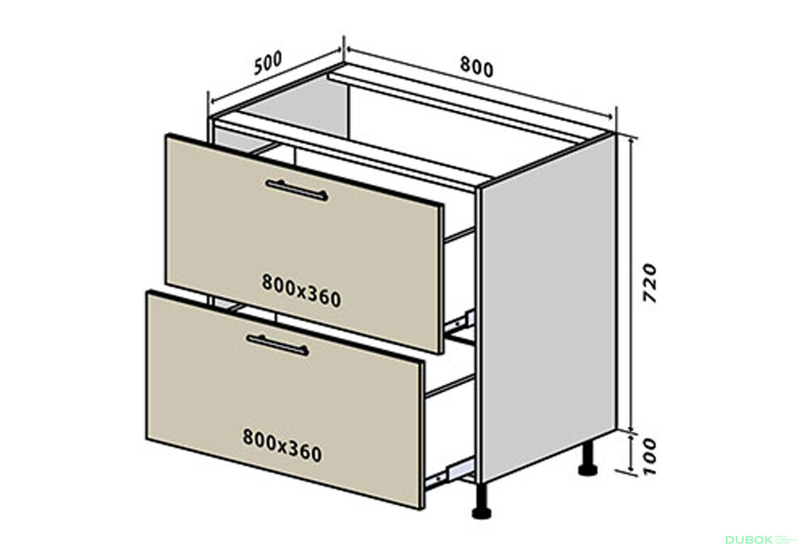 - Veľkosť. Šírka 80 cm, výška 82 cm a hĺbka 50 cm poskytujú dostatok priestoru na uskladnenie riadu, potravín a ďalších kuchynských doplnkov.