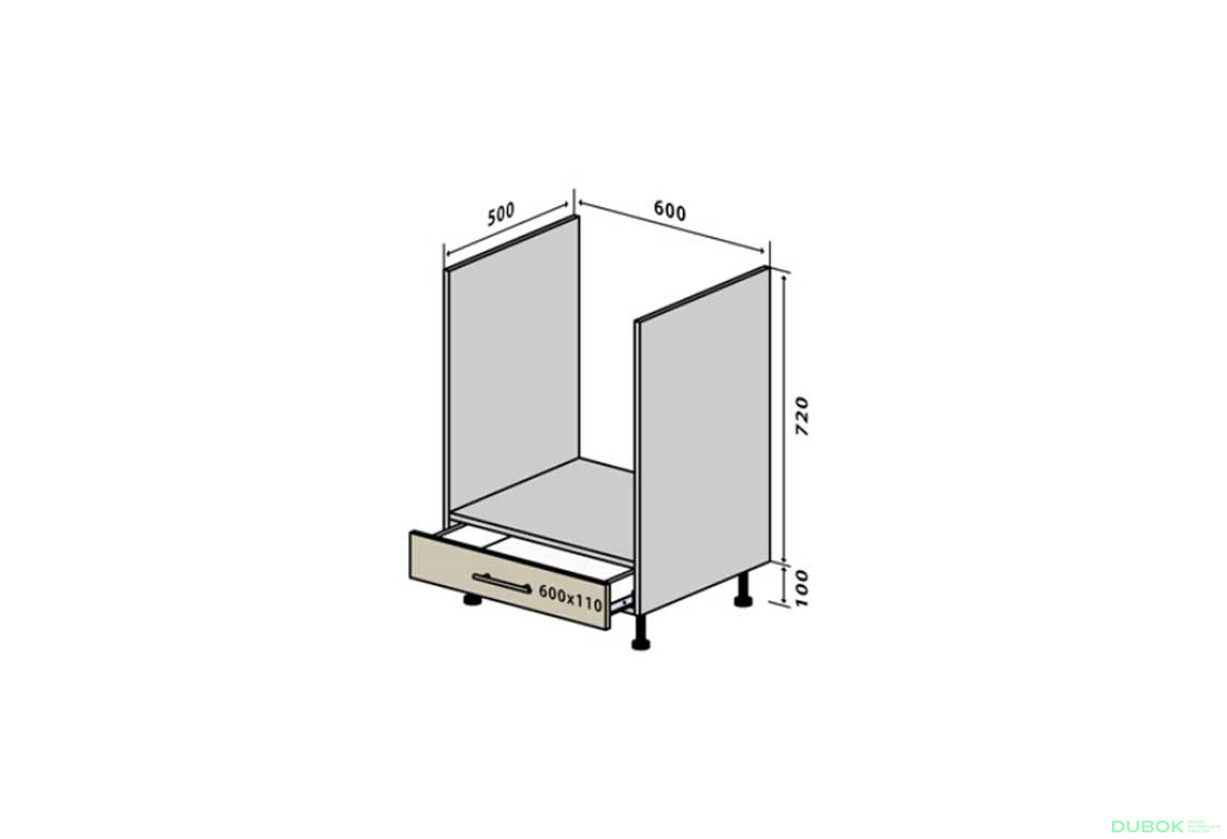 - Veľkosť: Šírka 60.00 cm, Výška 82.00 cm, Hĺbka 50.00 cm. Skrinka je dostatočne priestranná na umiestnenie rúry, pričom nezaberá príliš veľa miesta v kuchyni.