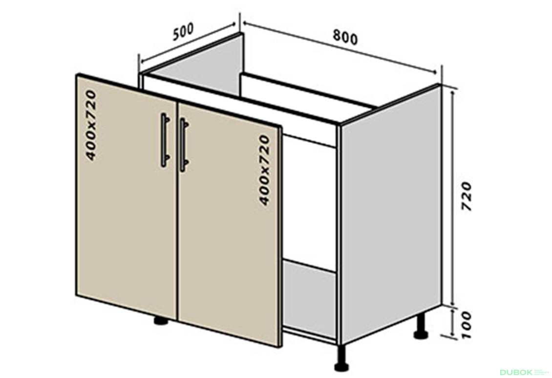 - Veľkosť. Skrinka má optimálne rozmery 80 cm šírka x 82 cm výška x 50 cm hĺbka, čo ju robí ideálnou pre rôzne kuchynské usporiadania.