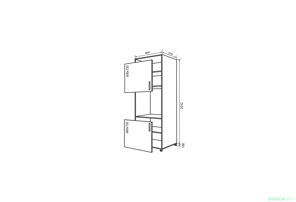 - Veľkosť. S rozmermi 60.00 cm na šírku, 213.00 cm na výšku a 57.00 cm na hĺbku, skriňa ponúka dostatok úložného priestoru pre vaše kuchynské potreby.
