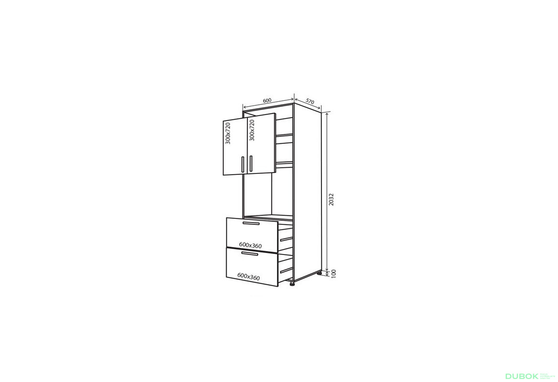 - Veľkosť. S rozmermi 60 cm x 213 cm x 57 cm je skriňa ideálna pre využitie v menších aj väčších kuchyniach, pričom ponúka dostatočný úložný priestor.