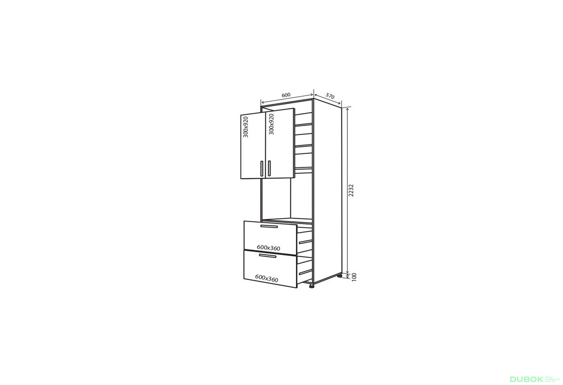 - Veľkosť: Šírka 60.00 cm, Výška 233.00 cm, Hĺbka 57.00 cm. Tieto rozmery zaručujú dostatočný úložný priestor bez zaberania príliš veľa miesta v kuchyni.