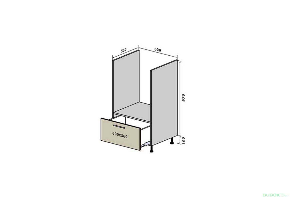 - Veľkosť: Šírka 60.00 cm, Výška 107.00 cm, Hĺbka 55.00 cm. Poskytuje dostatok priestoru na zabudovanie rúry a ďalších kuchynských zariadení, čím zabezpečuje maximálnu funkčnosť.