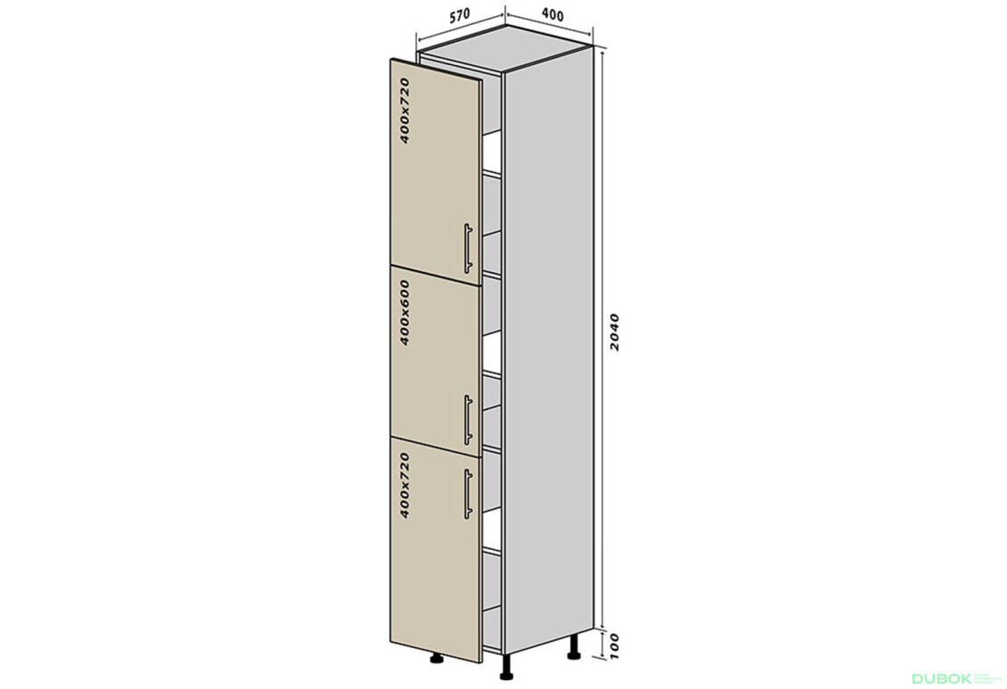 - Veľkosť. Šírka 40 cm, výška 214 cm a hĺbka 57 cm poskytujú ideálny priestor na uskladnenie kuchynských potrieb a doplnkov.