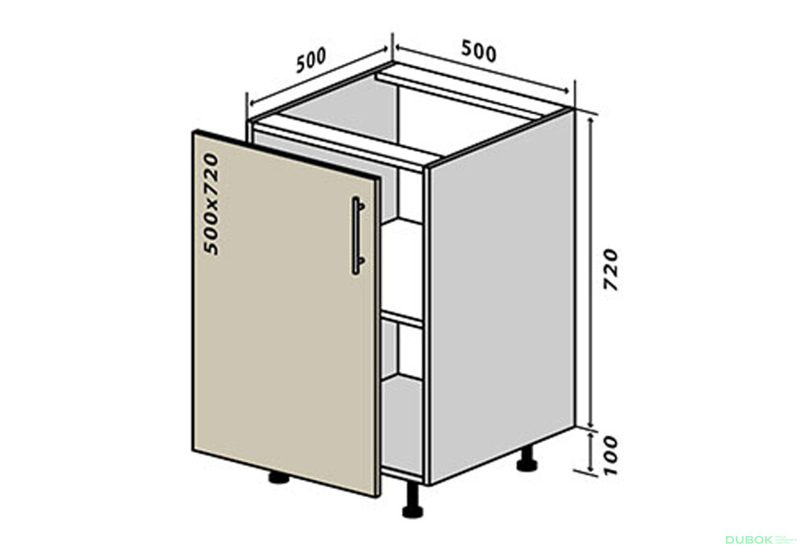 - Veľkosť. S rozmermi 50 cm na šírku, 82 cm na výšku a 50 cm na hĺbku je skrinka ideálna pre menšie aj väčšie kuchyne, pričom nezaberá príliš veľa miesta.