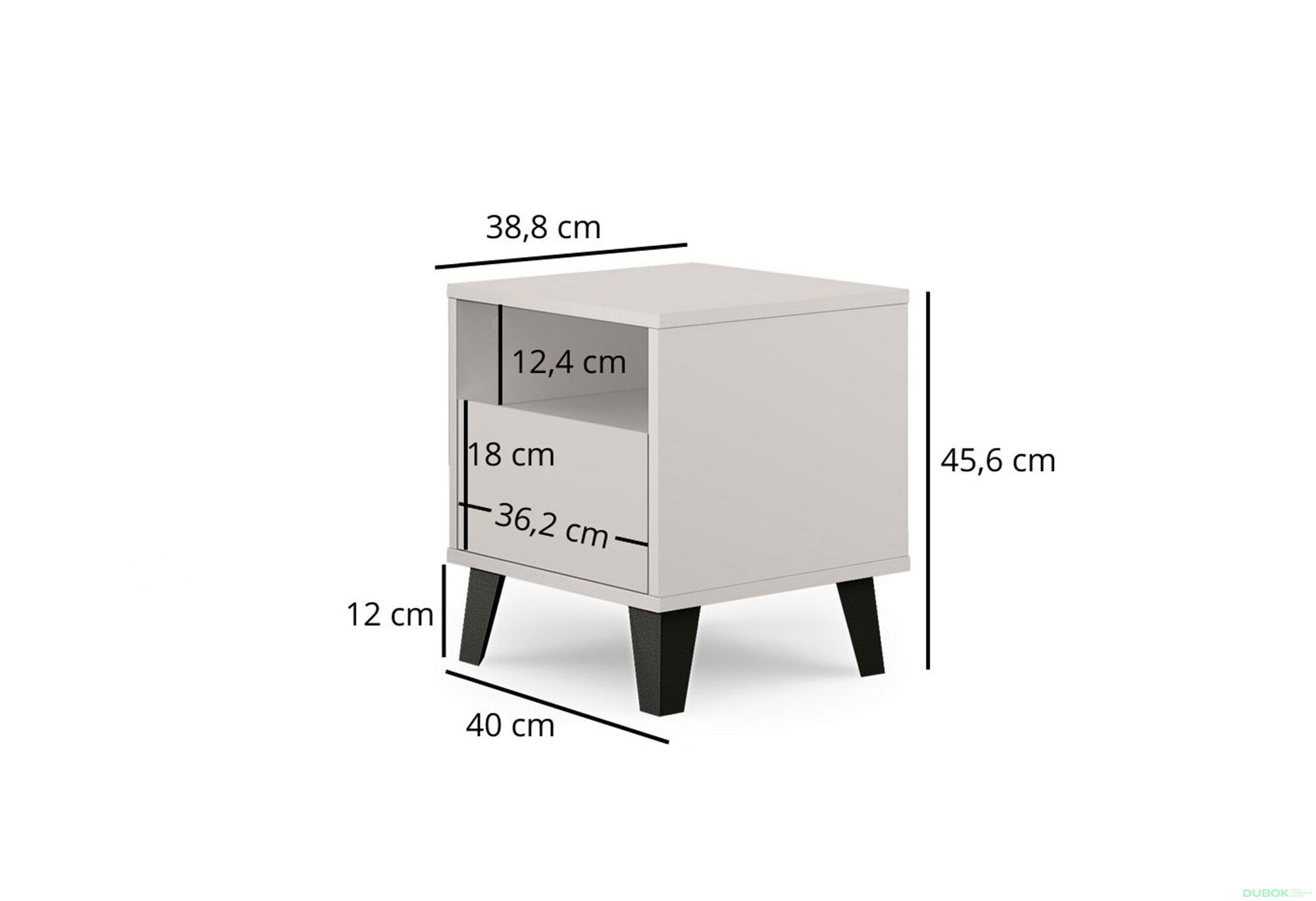 - Veľkosť. S rozmermi 45,60 cm na šírku, 40,00 cm na výšku a 38,80 cm na hĺbku je stolík ideálny do menších priestorov, pričom ponúka dostatok úložného priestoru.