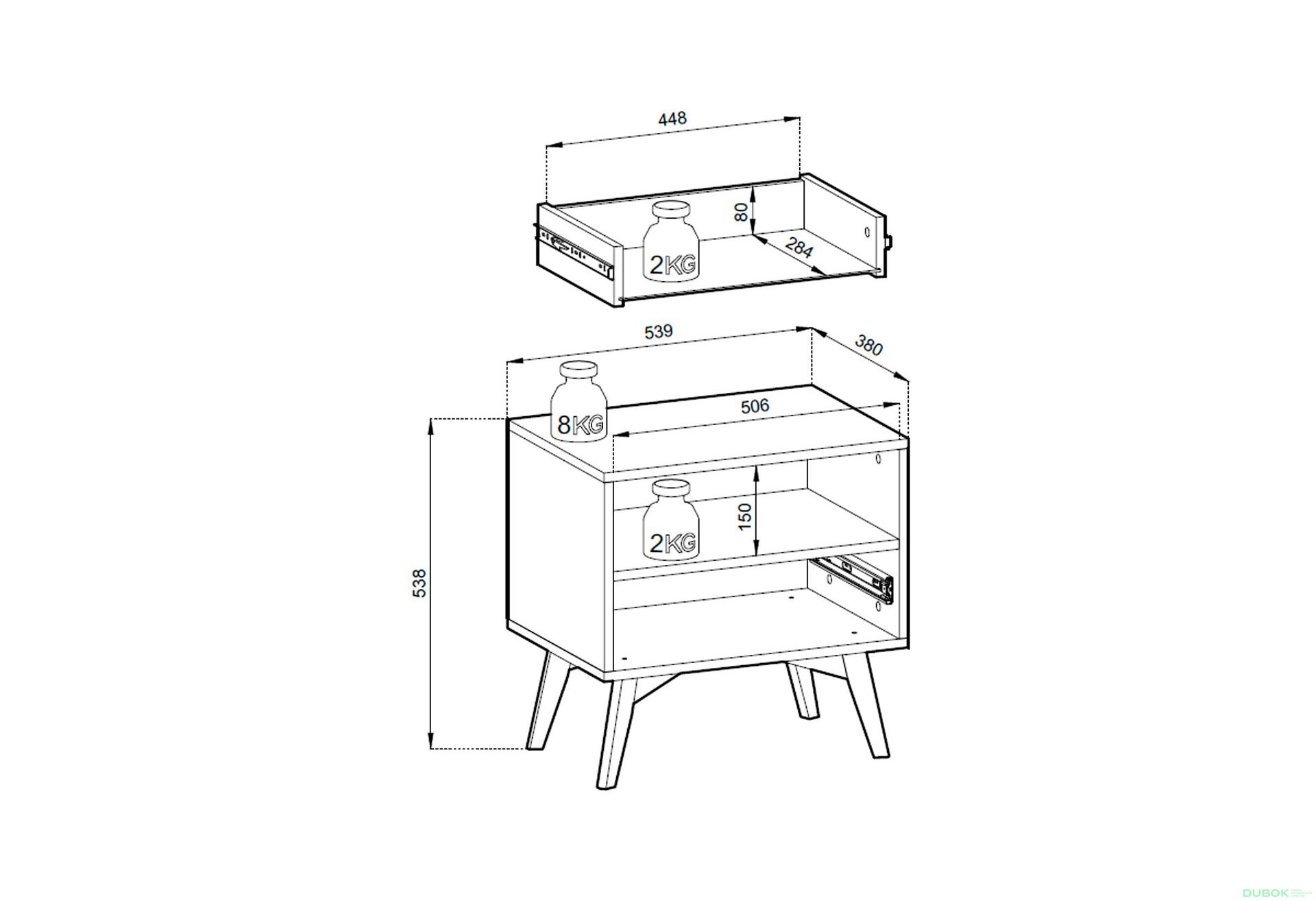 - Veľkosť. S rozmermi 54 x 54 x 38 cm je ideálny na umiestnenie vedľa postele alebo na iné miesta v domácnosti.