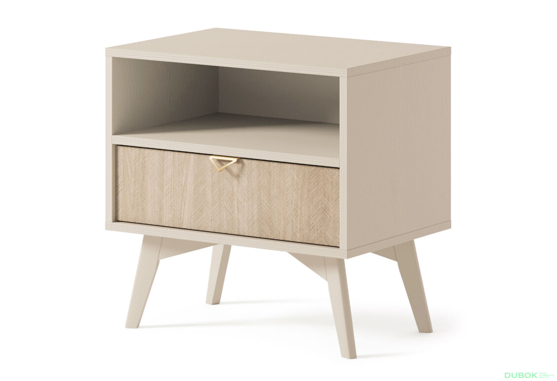 Nočný stolík S54 Forest béžový piesok / škandinávsky smrek je ideálnym doplnkom pre váš interiér, ktorý kombinuje moderný dizajn so skandinávskou estetikou. S jeho rozmermi 54 x 54 x 38 cm ponúka dostatok priestoru na odloženie kníh, lampy či osobných predmetov. Kvalitná drevotrieska a drevené nohy zabezpečujú stabilitu a dlhú životnosť. Zásuvky sú vybavené guličkovým vedením s plným výsuvom, čo zaručuje pohodlný prístup k obsahu. Laminovaný povrch je odolný voči poškriabaniu a ľahko sa udržuje, čo z neho robí praktický a funkčný kus nábytku, ktorý skvele doplní váš škandinávsky štýl.