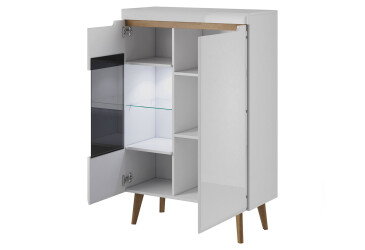 Nordi biela / biely lesk je moderný nábytok, ktorý kombinuje funkčnosť a estetiku. Jeho elegantný vzhľad s lesklým povrchom a kvalitnými materiálmi vytvára príjemnú atmosféru vo vašej domácnosti. Korpus je vyrobený z drevotriesky, zatiaľ čo predná strana je z MDF, čo zaručuje vysokú odolnosť a dlhú životnosť. Nohy sú z dreva, čo pridáva na stabilite a prirodzenom vzhľade. Tento produkt ponúka aj možnosť osvetlenia políc, čo oceníte najmä pri vytváraní útulnej atmosféry v obývacej izbe alebo spálni. S Nordi biela / biely lesk si môžete byť istí, že váš interiér bude vyzerať moderne a štýlovo.