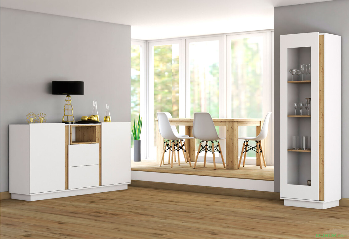 Obývacia izba Grey je moderný a funkčný nábytkový systém, ktorý dokonale zapadne do vašej obývacej izby. Tento produkt je vyrobený z kvalitnej drevotriesky, čo zaručuje jeho dlhú životnosť a odolnosť. Matná povrchová úprava dodáva nábytku elegantný vzhľad, ktorý sa hodí do akéhokoľvek moderného interiéru. Obývacia izba Grey je navrhnutá tak, aby splnila všetky vaše požiadavky na úložný priestor a organizáciu, pričom zachováva estetiku a štýlovosť. S týmto nábytkom si môžete vytvoriť útulný a príjemný priestor, kde si užijete čas s rodinou a priateľmi. Vďaka variabilite modulového systému môžete jednoducho prispôsobiť usporiadanie a výber jednotlivých kusov podľa svojich potrieb.