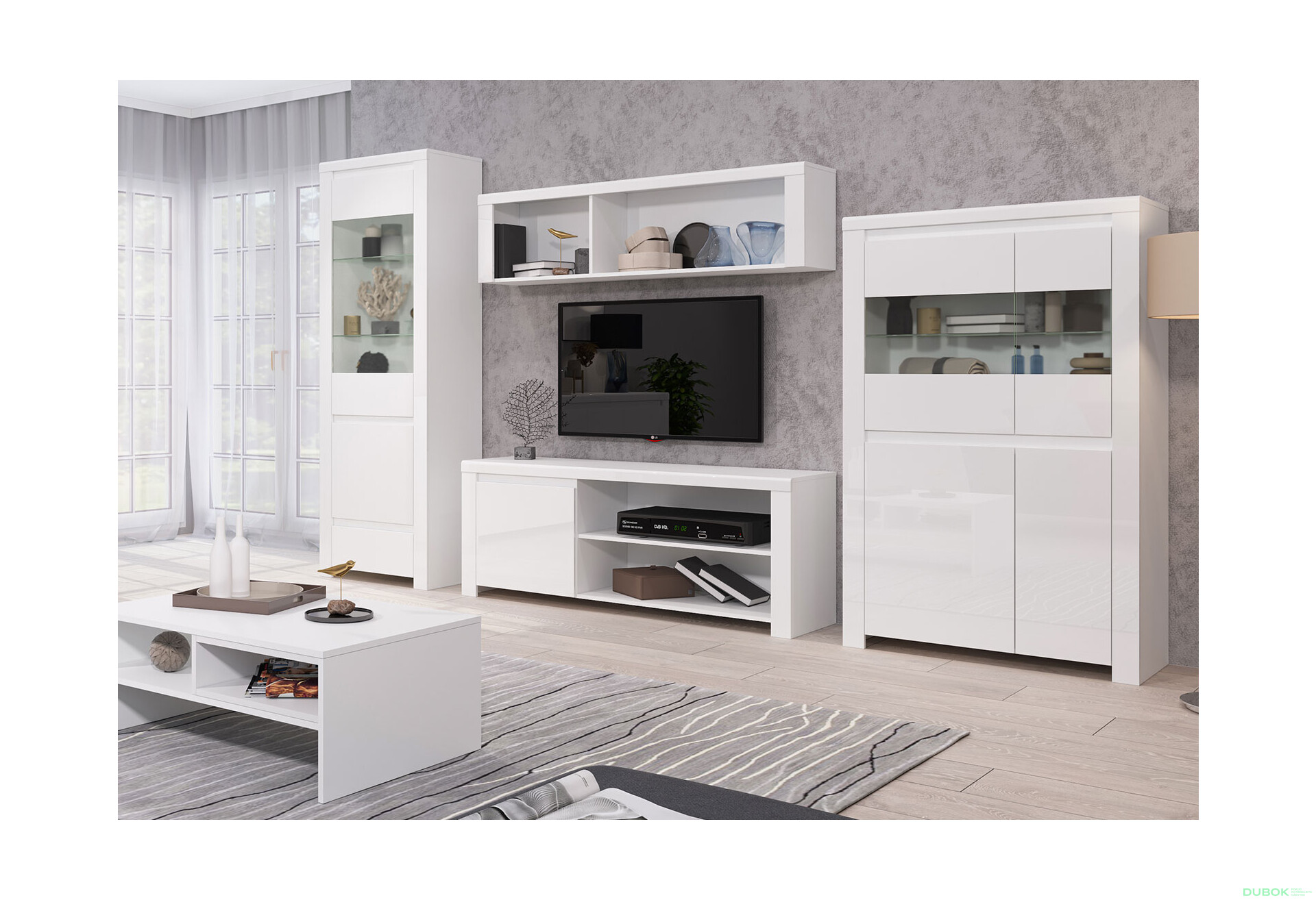 - Vitrína nízka 2d2w biely lesk Lingo, 1 ks – 98.00 cm x 156.00 cm x 41.50 cm