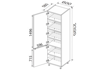 - Veľkosť. Rozmery skrinky 60 cm x 232 cm x 58 cm sú ideálne pre efektívne využitie priestoru vo vašej kuchyni.
