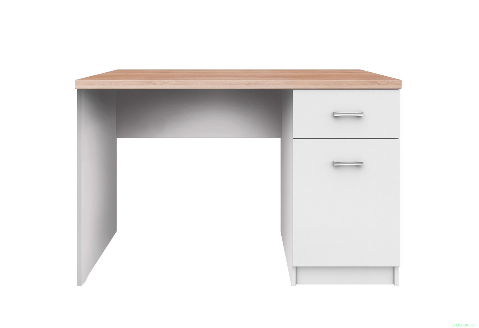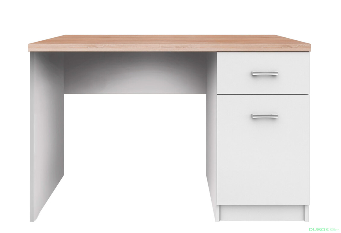 Písací stôl 1d1s/120 je dostupný v dvoch dekoroch: biela a dub sonoma, čo umožňuje prispôsobiť vzhľad stola podľa vašich preferencií a štýlu interiéru.
