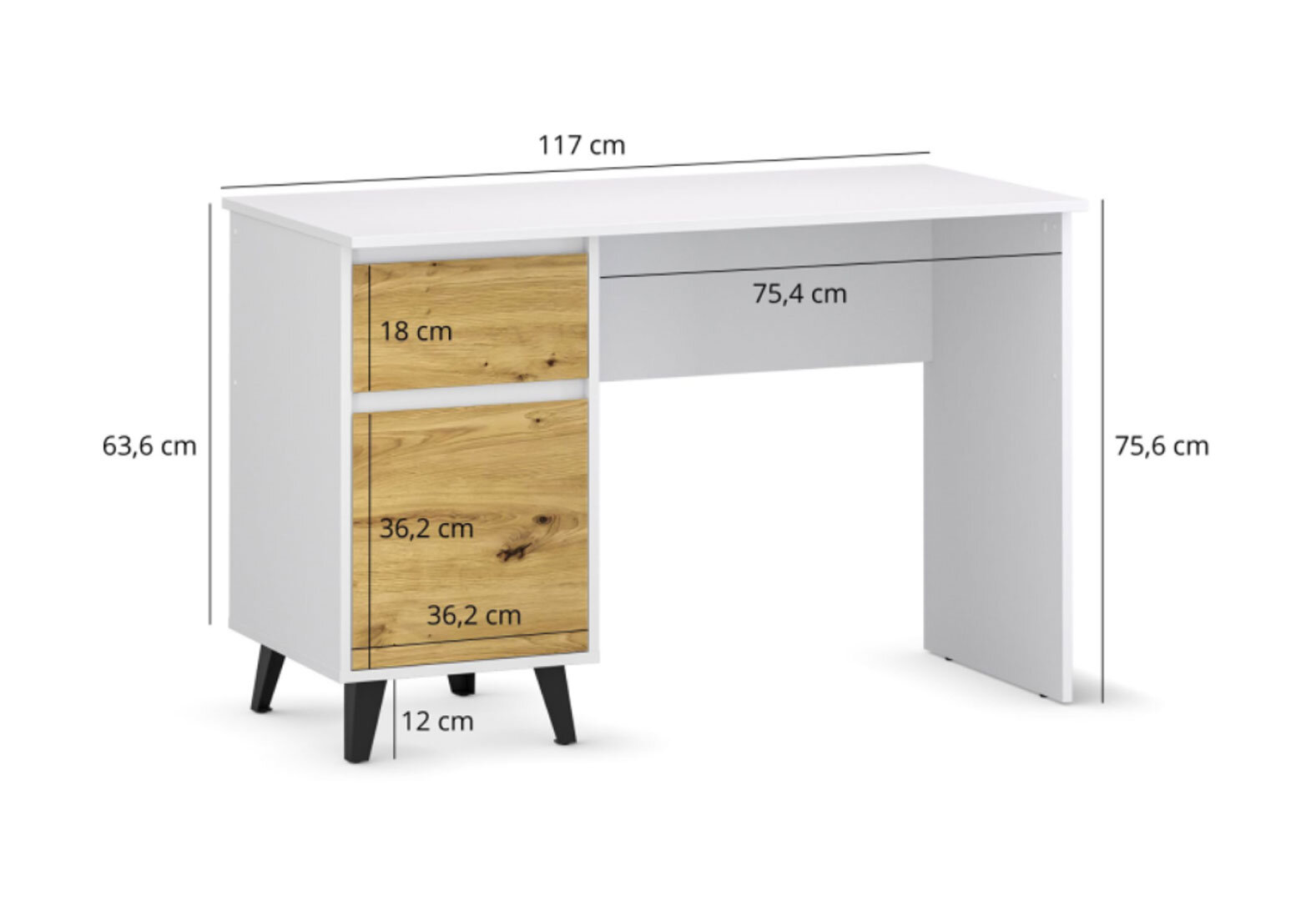 - Písací stôl Borg 1d1s/120 biely / dub artisan