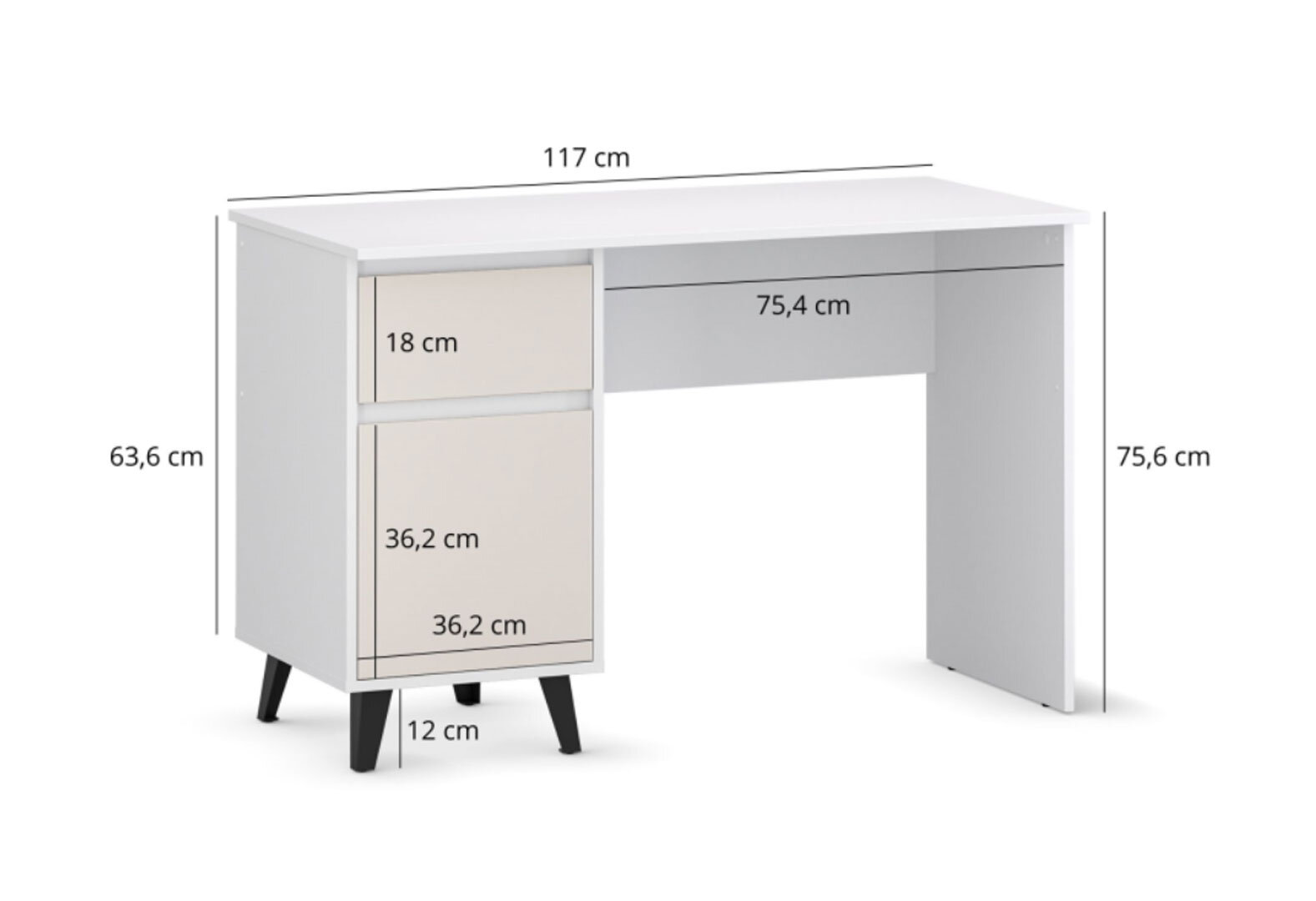 Písací stôl Borg 1d1s/120 biely / kašmír