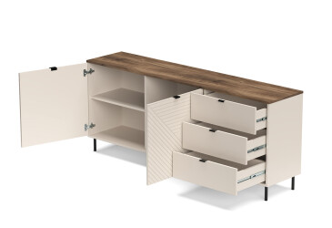 - Moderný štýl. Elegantný dizajn v dekore kašmír a dub castello sa hodí do každého moderného interiéru.
