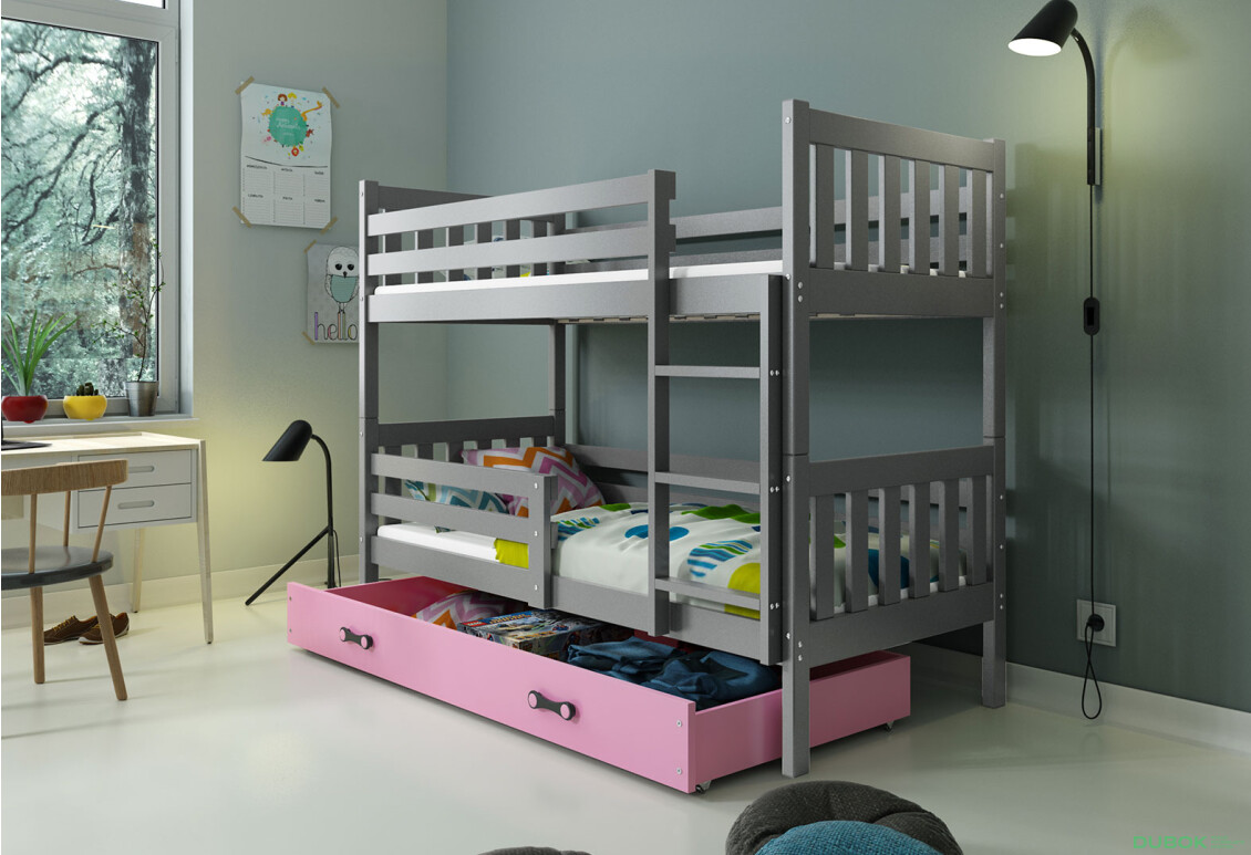 Recenzie - Poschodová posteľ Carino grafit, zásuvka ružový 80x190 cm s roštom, matracom (0)