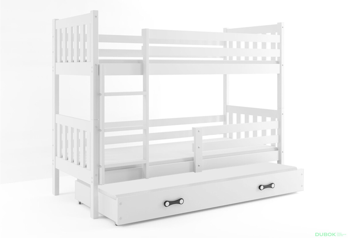 Recenzie - Poschodová posteľ Carino pre tri osoby biele, zásuvka biela 80x190 cm s roštom, matracom (0)