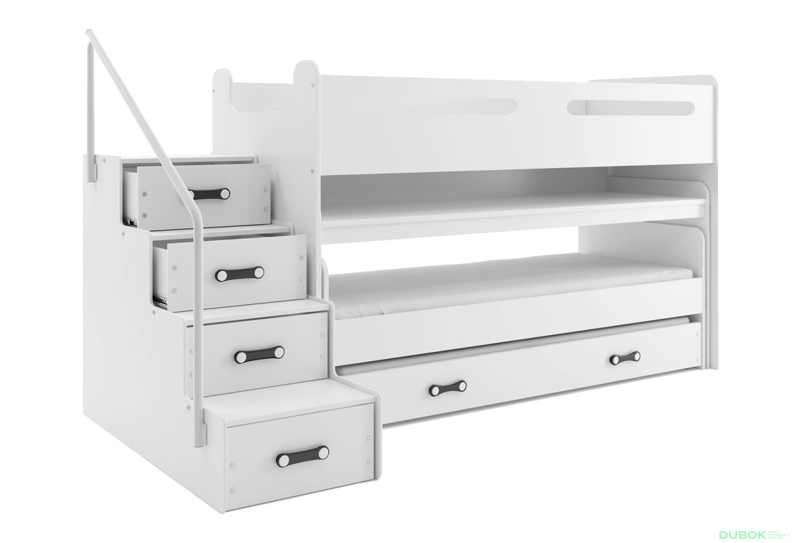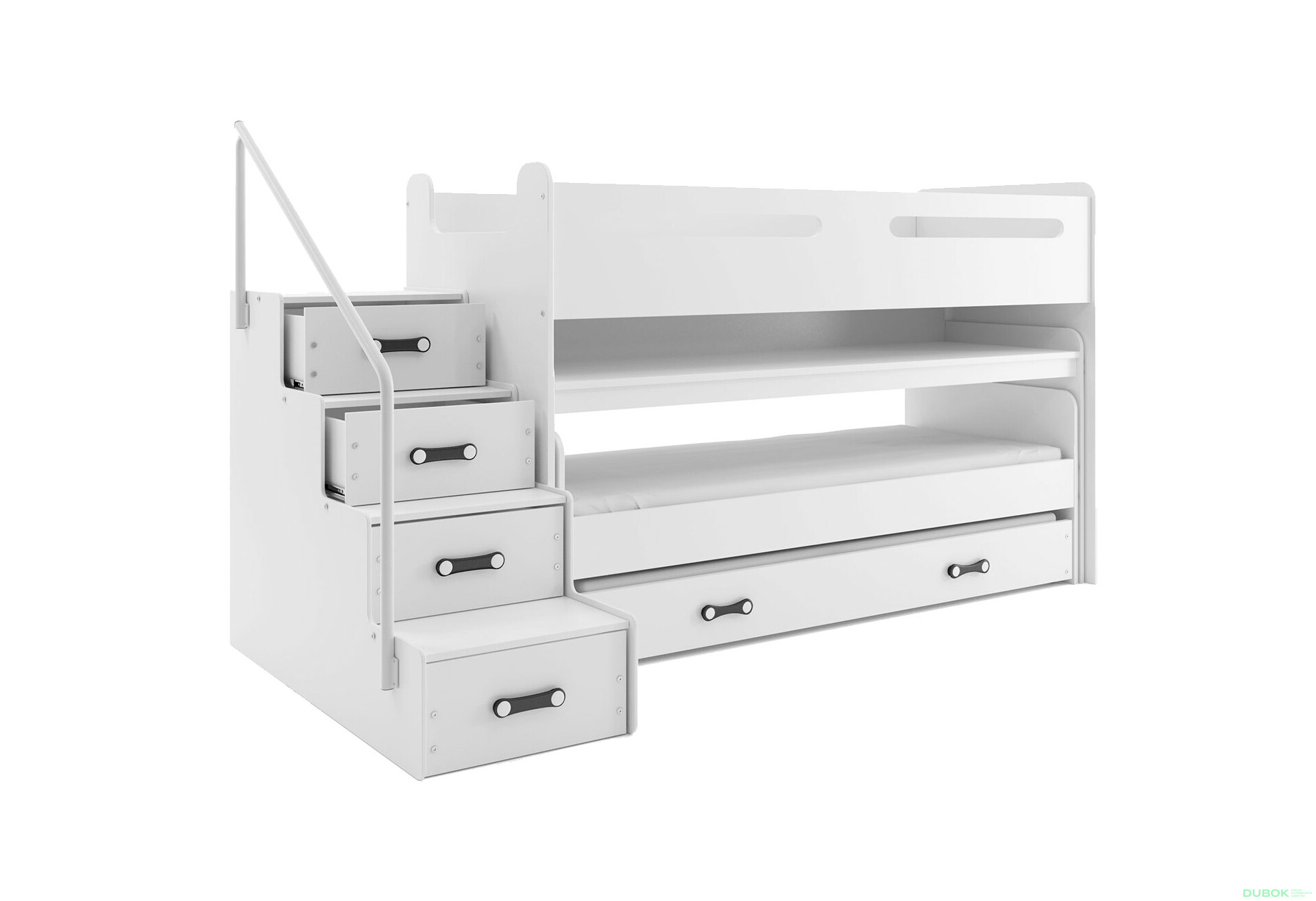 Recenzie - Poschodová posteľ Max 1 pre tri osoby biele 80x200 cm s roštom, matracom (0)