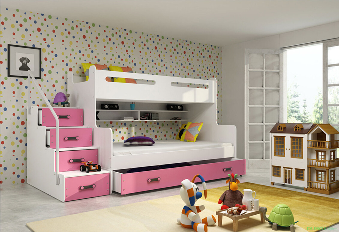 Recenzie - Poschodová posteľ Max 3 biele / ružový 80x200 / 120x200 + zásuvka, s roštom, matracom (0)